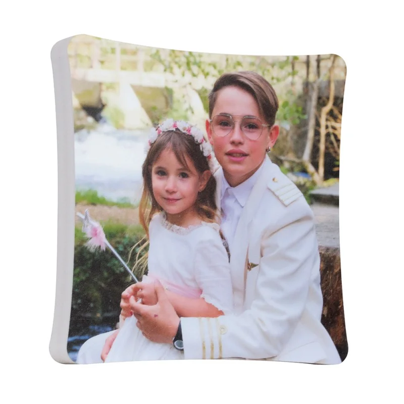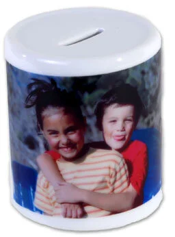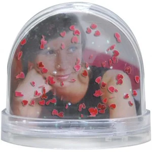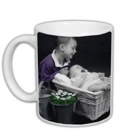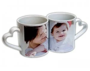 Dos tazas con la misma fotografía impresa y los asas en forma de corazón